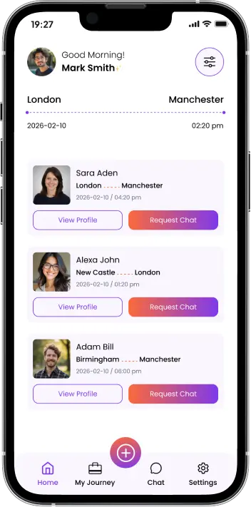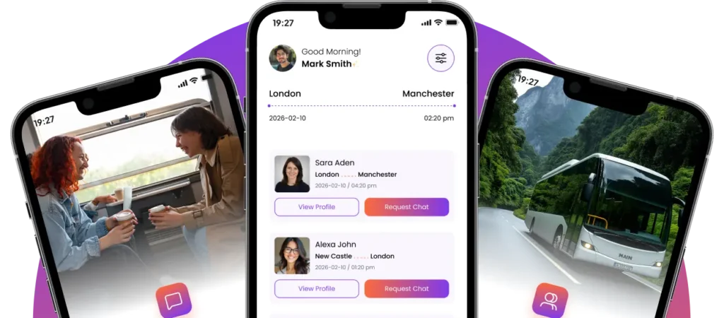 Your profile is visible only to travelers on the same route and date — never to the public. No random browsing, no public exposure, and no tracking beyond your trip.